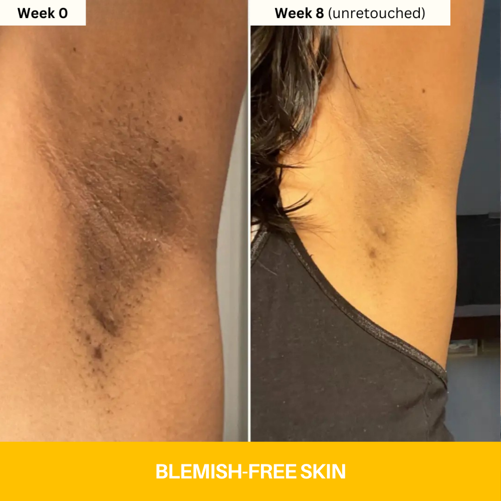"I had discoloration on my thighs from friction and shaving. After just two weeks, the skin tone looks even and the texture feels so much smoother. I can finally wear what I want again!"